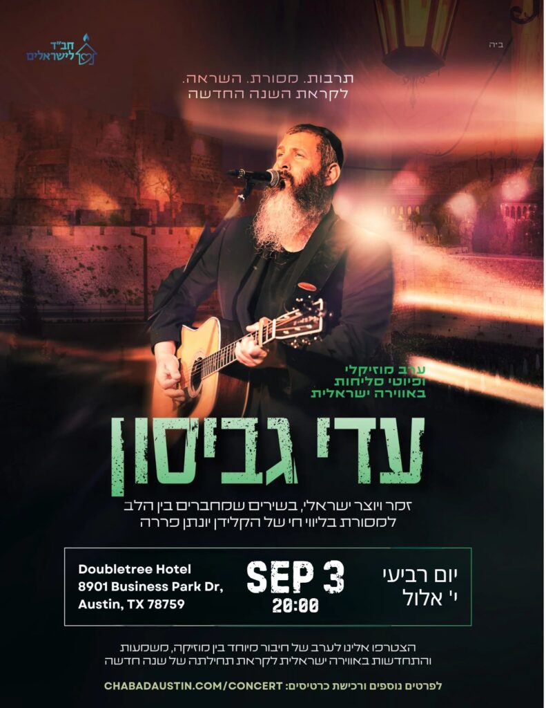 Join us for an evening of inspiration and song in honor of the jewish new year, with singer-songwriter Adi Gabison!