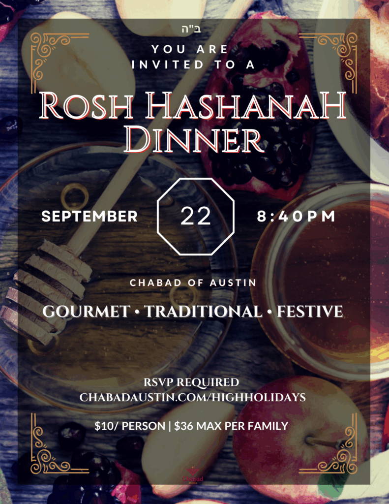When: Monday, Sept 22, 8:40pmWhere: The Chabad Sukkah at 3500 Hyridge Dr, Austin Tx, 78759.