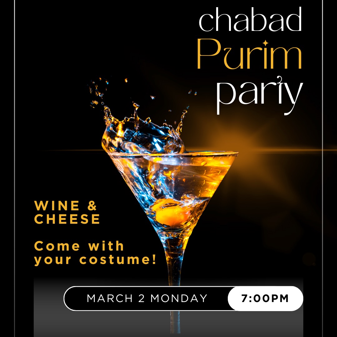 Join us for an epic Purim party! Starting with the Megillah reading at 7:00pm, followed by a party with an wine and cheese, refreshments, music, and dancing! Come in your costume!